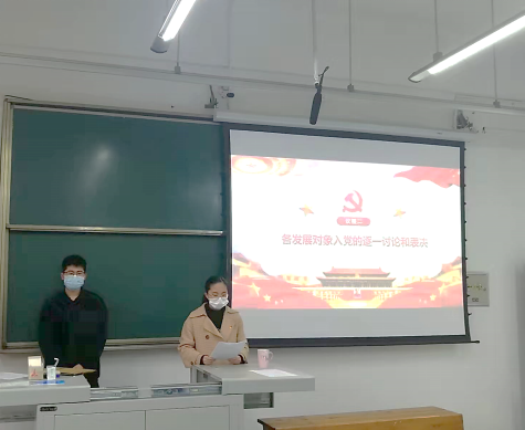 首先,张泽慧同志就上级党组织的相关文件,对本次参会情况、会议流程进行了介绍。各发展对象入党的逐一讨论和表决流程为:由发展对象做自我介绍并宣读入党志愿书、第一介绍人发表介绍意见、第二介绍人发表介绍意见、党支部委员会(党支部)报告对发展对象的考察及政审情况、其他党员(积极分子或群众) 对发展对象提出意见建议、发展对象对以上意见表明态度、表决权的正式党员进行无记名投票表决。