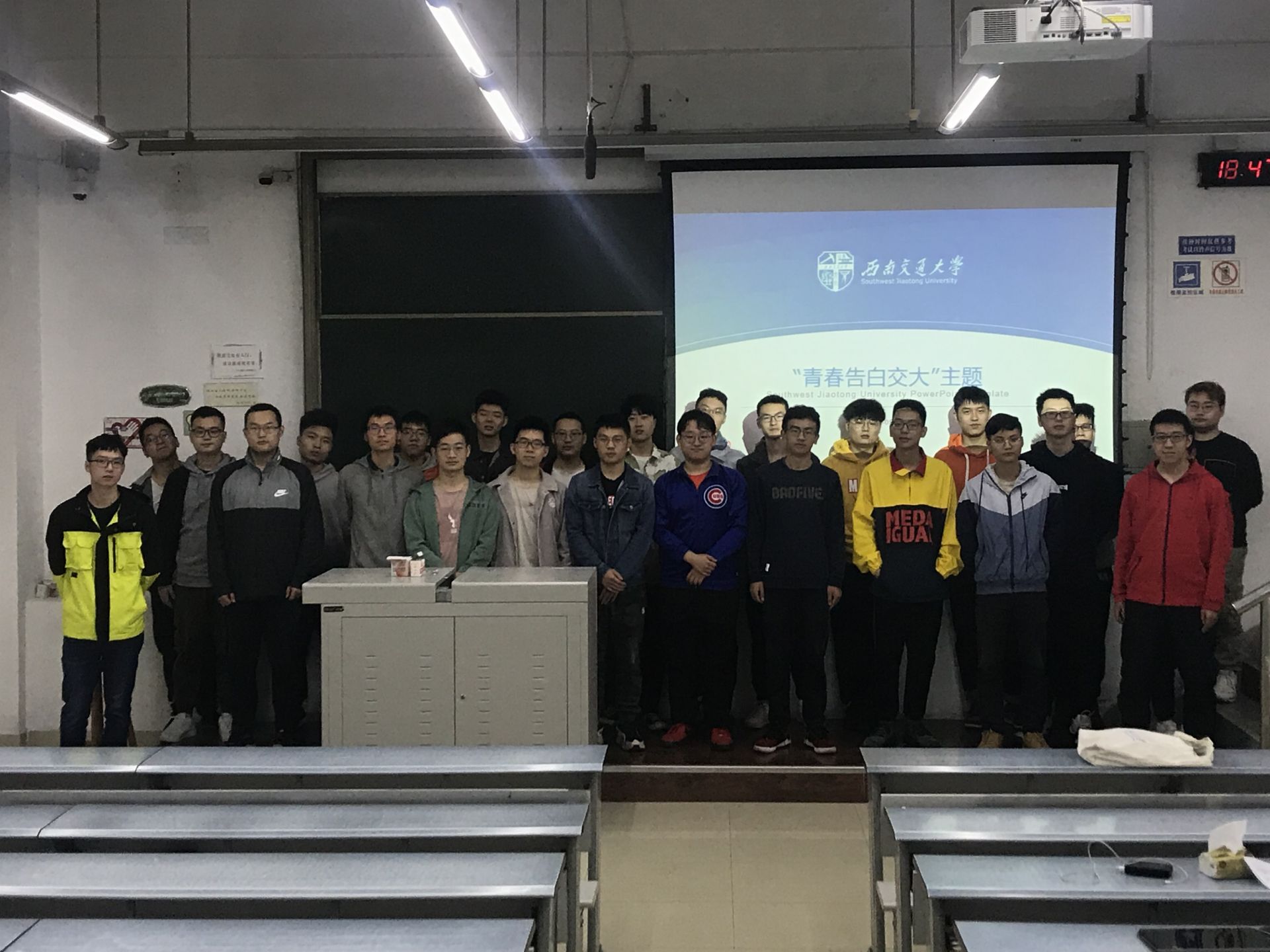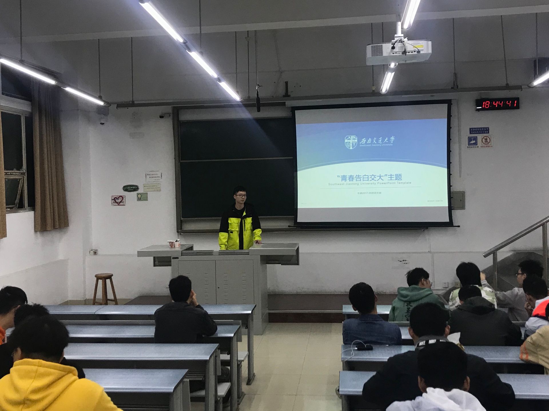 活动于晚上7点开始,参加活动人数31人,组织进行签到记录。团支部书记杨文昊首先致开场词,强调了在新中国成立71周年与建档一百周年的重要时刻的背景下,作为新时代新青年的我们要始终牢记中华民族伟大复兴的伟大使命,要理解习总书记在十九大报告中指出的“青年兴则国家兴,青年强则国家强。青年一代有理想、有本领、有担当,国家就有前途,民族就有希望。中国梦是历史的、现实的,也是未来的;是我们这一代的,更是青年一代的。中华民族伟大复兴的中国梦终将在一代代青年的接力奋斗中变成现实。”的深刻含义。在这里程碑的时刻,我们青年要不断地充实自己,而交大就是在不断地为祖国培养出色的青年人才,为新中国的交通事业作出了巨大的贡献,我们作为交大学子借此机会为交大告白。开场词后,班长同晓阳带领大家重温了交大历史,从1896年到今天,学校经过多次搬迁,成为了如今的伟德国际1949始于英国,学校的历史是悠久的,是伟大的,竢实扬华的交大精神没有被遗失,而是深深地刻在了每一个交大人的心中。同时,同晓阳也为我们介绍了杰出的西南交大员工与毕业学长学姐的优秀事迹,鼓励车辆5班的各位同学在毕业季到来之时,也能很好地为自己的未来做好打算,以后也能成为对社会有贡献的人。班长致辞完毕后,全班同学对交大各自进行了讨论与告白,其中孙建同学上台为大家介绍了交大在科研领域的重大成就,期望大家以后也能在机械等领域有着自己的一番作为,成为一名合格的交大人、机械人。