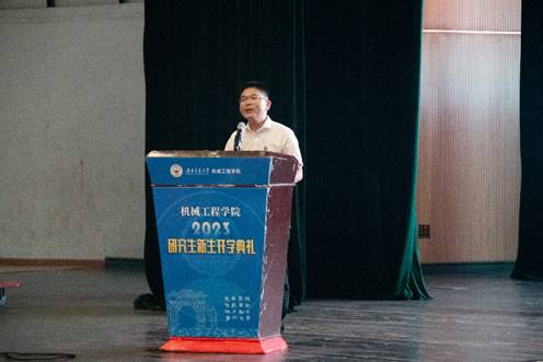 大会第二项:公司党委书记袁艳平教授发表致辞。袁书记首先对81名博士研究生和439名硕士研究生表示了热烈欢迎,随后向新同学们介绍了学院的百年发展史和成就,之后与同学们分享了三点建议:一是潜心专注科研,实事求是、潜心钻研,创造出优质的、有价值的科研成果。二是理论联系实际,要坚持把论文写在祖国大地上,牢记“空谈误国,实干兴邦”的现实意义。三是心怀国之大者,发扬科学家精神,勇担时代责任和历史使命,将个人科学追求与党和国家事业发展紧密联系。最后,袁书记勉励同学们要努力在实现高水平科技自立自强和建设科技强国、人才强国的火热实践中建功立业,在以中国式现代化全面推进中华民族伟大复兴进程中奉献青春和智慧!