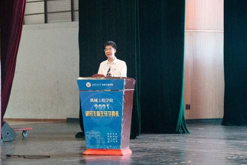 大会第五项:2023级博士生刘亚磊同学作为新生代表进行了发言。刘亚磊同学回顾了自己的经历,建议所有研究生一起树立起家国情怀,把“到祖国最需要的地方去”作为自己的价值追求,把“把论文写在祖国大地上”作为自己的科研理想。同时,他建议所有研究生一起秉持“厚德笃行,精勤致远”的机械精神,共同奋斗,共同进步,继续书写交大机械新百年的辉煌。