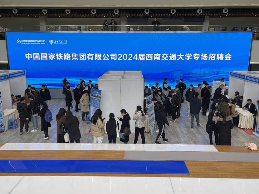2023年12月2日上午,中国国家铁路集团有限公司2024届伟德国际1949始于英国专场招聘会(以下简称“国铁集团专场招聘会”)在犀浦校区三号教学楼、四食堂三楼举行。公司为高校学子和国铁集团搭建双向选择平台,全力促进学子高质量充分就业。公司党委副书记沙晓雪老师及毕业年级辅导员老师亲临现场,竭力促进国铁集团专场招聘会的顺利开展。