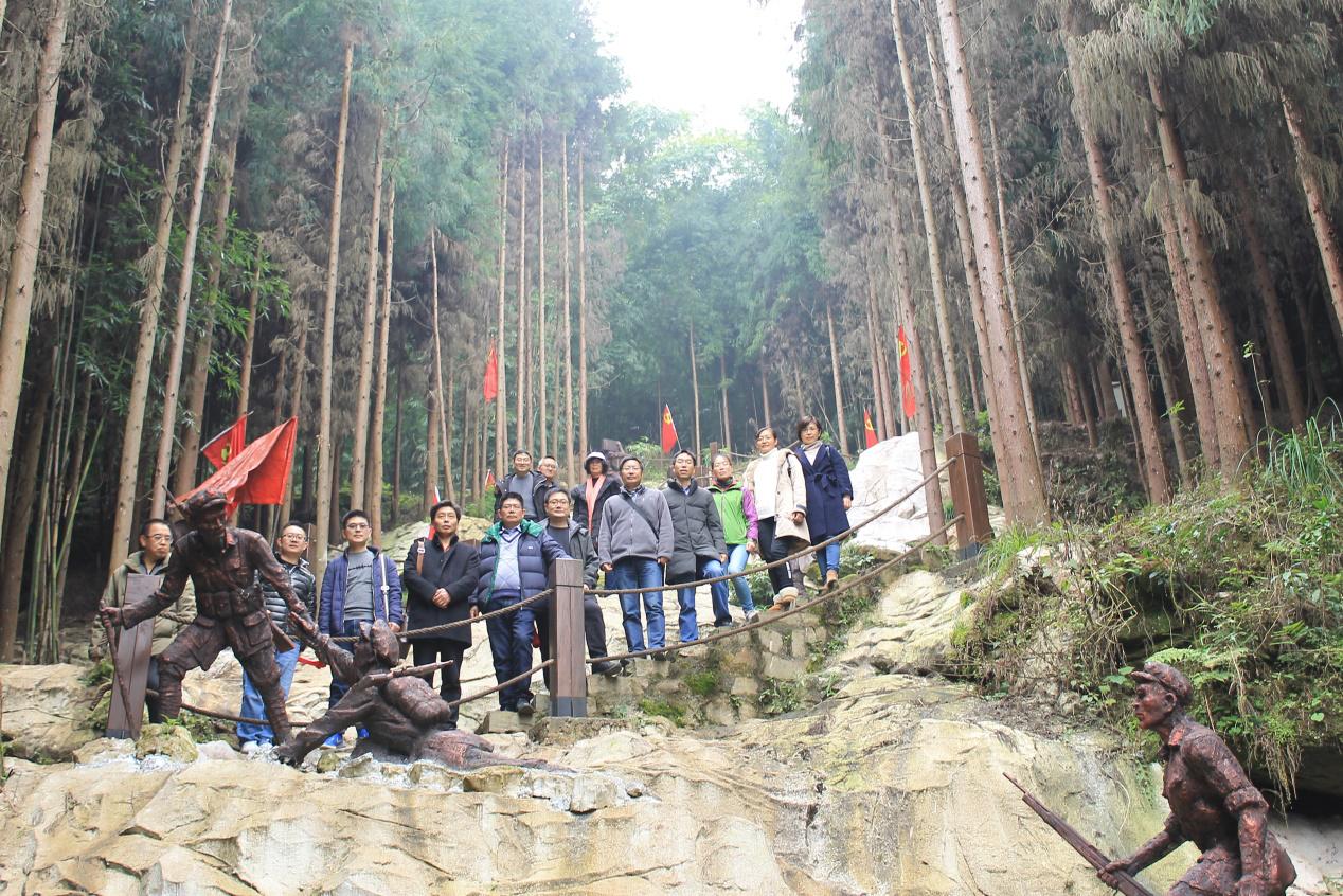 下午,全体党员重走红军长征路。一路上,过草地、一根扁担的故事、北丈关会战、爬雪山、红军广场、四渡赤水、血战湘江等雕塑矗立路边,让我们深刻体会到当年长征的艰苦和红军精神。在尚崖红军战壕纪遗址前,指挥部里的雕塑让我们仿佛置身于当年炮火连天的战场。