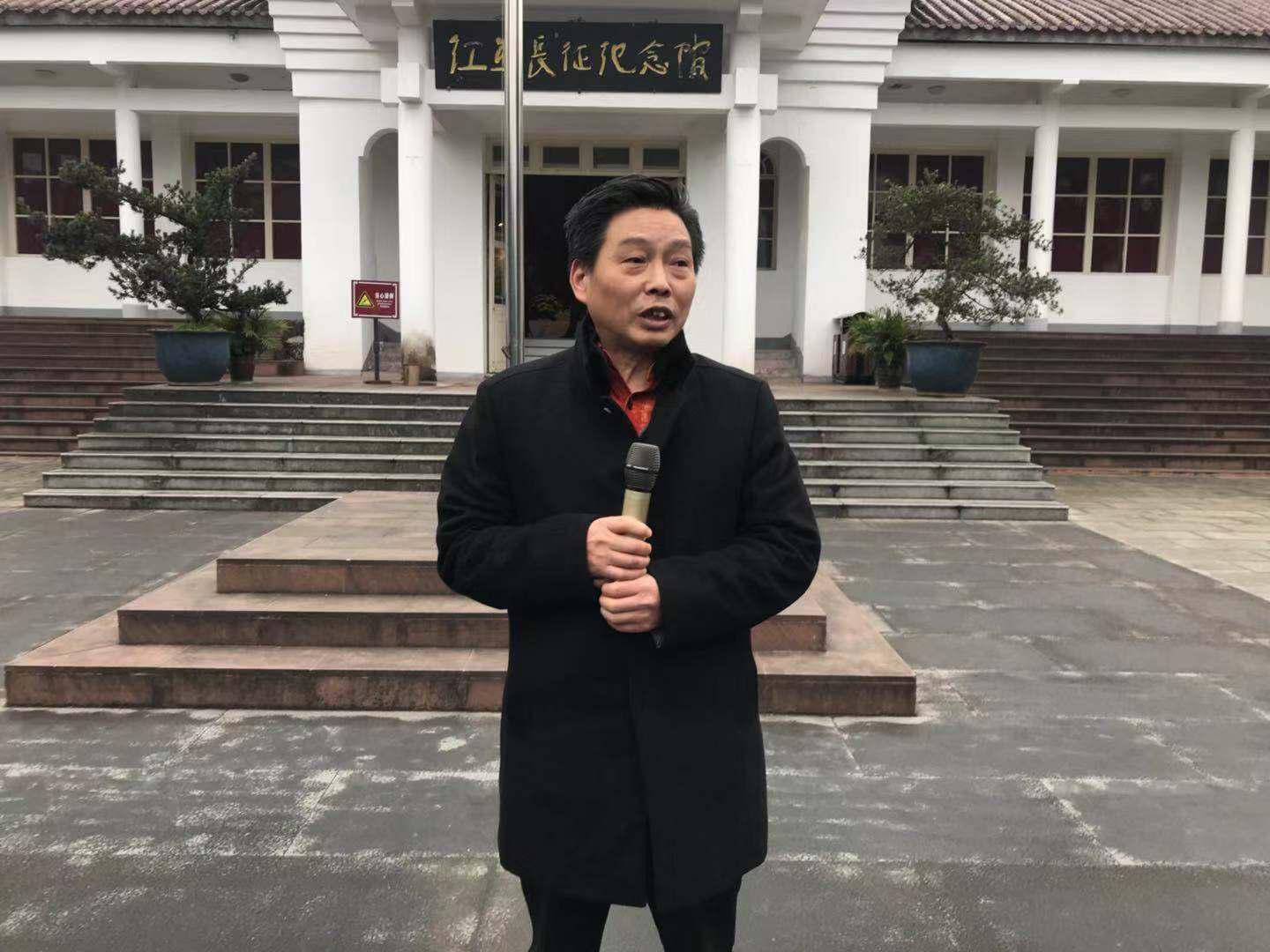 中国红军经历的二万五千里长征是人类战争史上的奇迹。长征精神是中华民族百折不挠、自强不息精神的最高表现。在红军长征纪念馆前广场,参加活动的全体党员面向红军长征纪念馆列队站立,在庄严地迎接中国共产党党旗后,怀着对国家的热爱及民族的自豪感,全体奏唱中华人民共和国国歌。