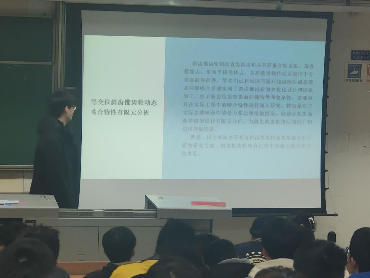 宋旭同志介绍了等变位斜锥齿轮动态啮合特性有限元分析等相关知识。