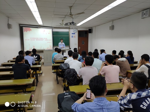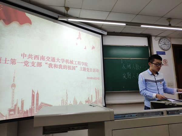 研究生之窗讯(记者 王伟 摄影报道)2019年9月27日晚上8点,中共bevictor伟德硕士第一党支部在公司九里校区逸夫楼4404A室召开了“我和我的祖国”主题党日活动。会议由支部宣传委员王伟同志主持,支部党员按时出席此次会议。