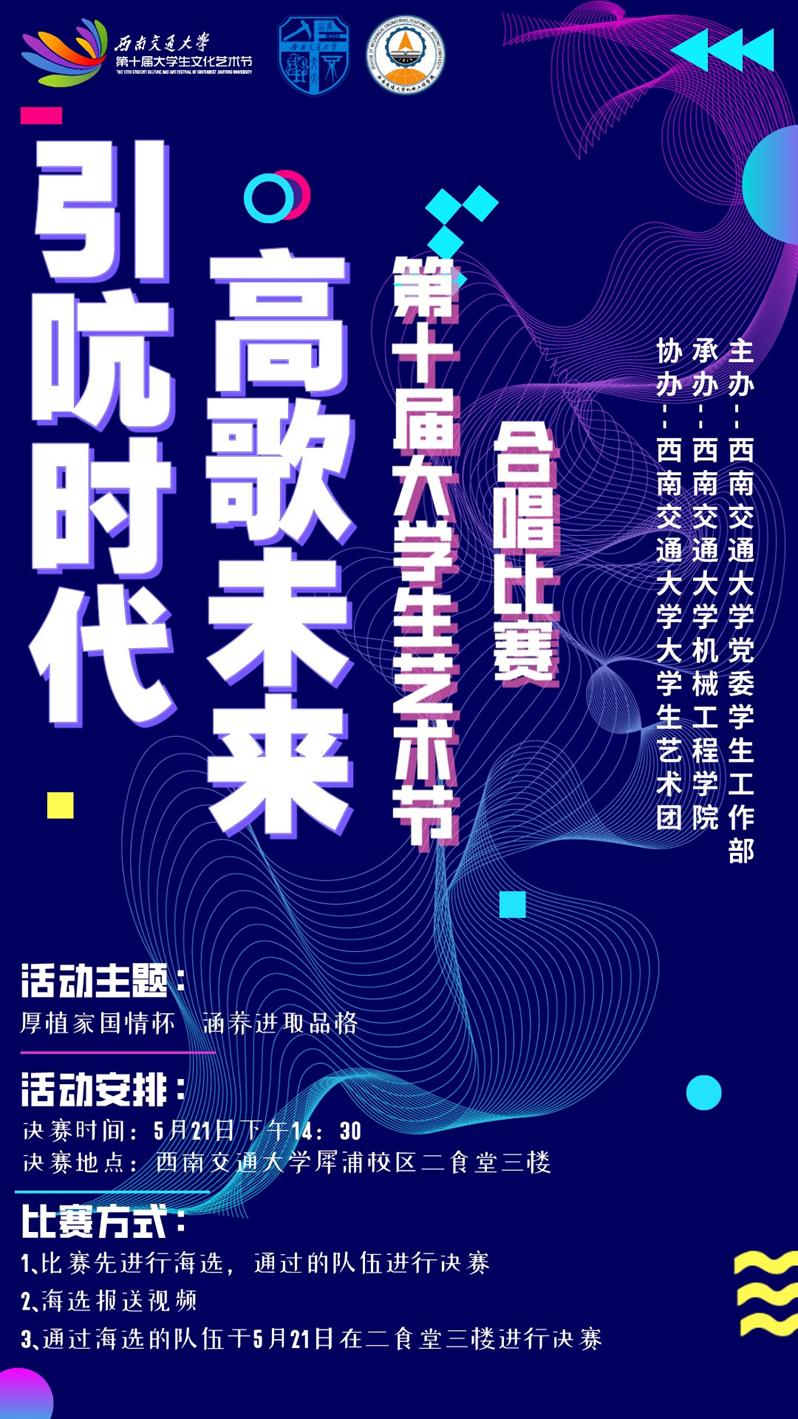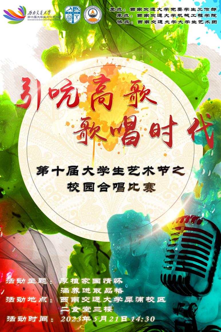 喉中日月,口中乾坤。伟德国际1949始于英国第十届老员工文化艺术节之第一届“引吭时代,高歌未来”校园合唱比赛即将在2023年5月21日下午14:30于西南交大犀浦校区二食堂三楼拉开帷幕。