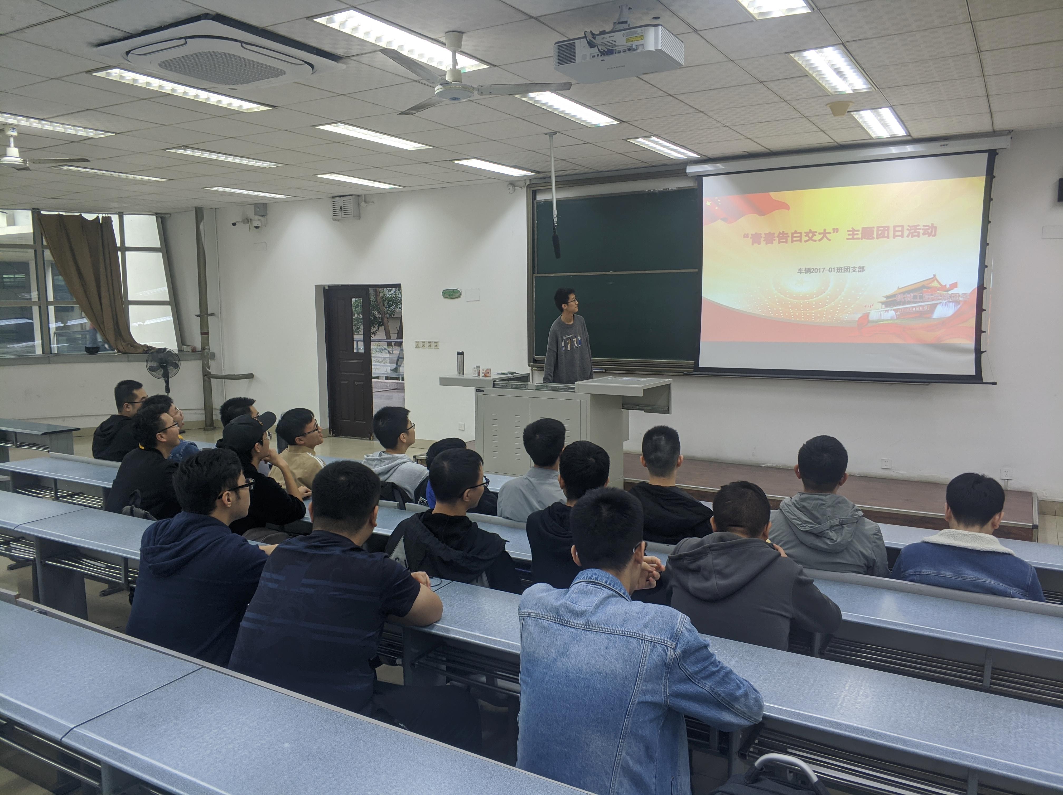 为弘扬新时代爱国主义精神,强化国家意识和集体观念,国庆节期间,各团支部可通过“读、写、拍、画、创、听、说、演、唱”等形式,打造富含爱国主义精神的校园文化活动、网络文化作品、创新创业项目等团支部特色品牌,生动真挚表达爱国热情。bevictor伟德车辆2017级1班团支部在2020年10月10日下午4点半左右在X1215教室开展“青春告白交大”主题团日活动。