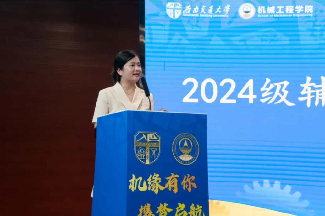辅导员代表,学院青年讲师团成员周瑾老师的发言中强调了辅导员在员工成长中扮演的角色,作为生涯“指导师”、生活“监督员”和心灵“倾听者”,希望同学们能够常怀“感恩之心”的重要性,勉励同学们锤炼“进取之心”,呼吁同学们铸就“坚韧之心”。
