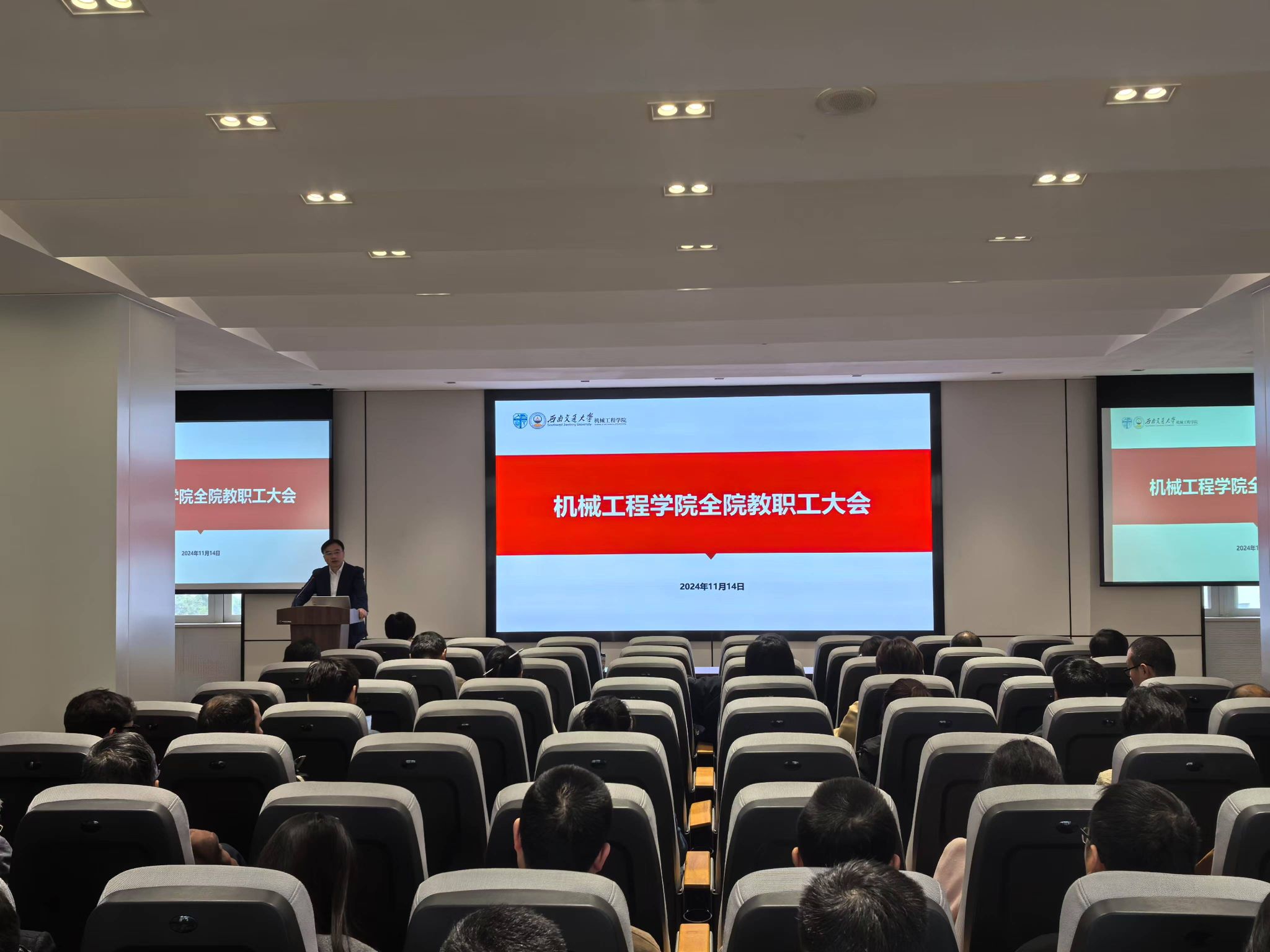 2024年11月14日下午,bevictor伟德在机械馆J2530召开全院教职工大会。大会由公司党委副书记、纪委书记、副经理曾东红主持,学院经理钱林茂主讲,特别邀请科学技术发展研究院副经理李怀龙到场对教职工进行科研投标违纪案例的警示教育。