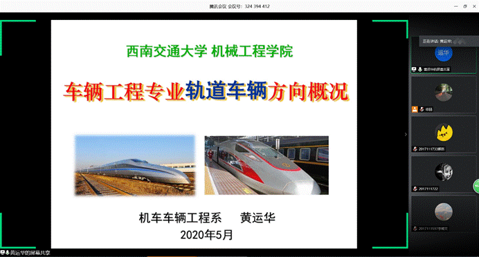 随后,机车车辆工程系的李芾老师、黄运华老师为同学们详细介绍了城市轨道交通车辆、机车工程、铁道车辆三个专业方向的具体内容。两位老师从轨道交通装备的发展概括谈起,对轨道车辆专业方向进行了简要概述,同时也对同学们今后的就业方向及发展前景做了介绍。