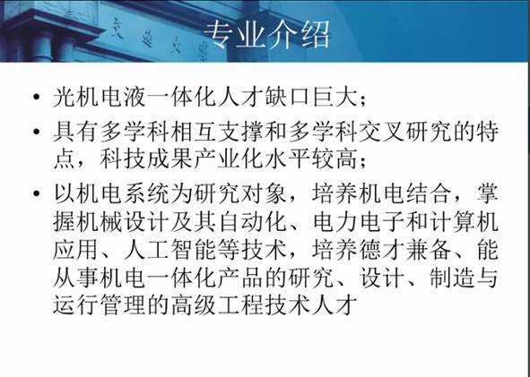 最后为同学们进行专业讲解的是机械电子工程专业的高宏力老师。高老师首先对专业进行了介绍,指出本专业的当前形势与就业发展前景。之后,高老师向同学们展示机械电子工程专业雄厚的团队力量以及诸多的科研成果,极大程度上增加了同学们对机械电子工程专业的选择意愿。