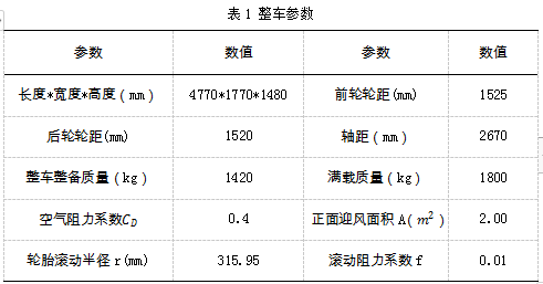 本设计参考并联式混合动力电动汽车比亚迪·秦,汽车的整车参数如下表1。