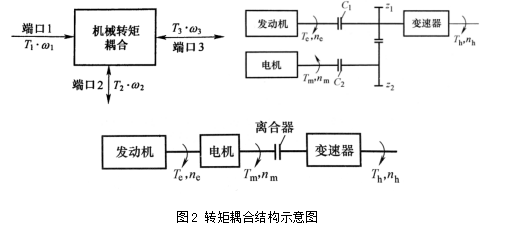 机械耦合有三种形式,分别是转矩耦合、转速耦合和功率耦合。转矩耦合装置和转速耦合装置均具有三个端口和两个自由度。