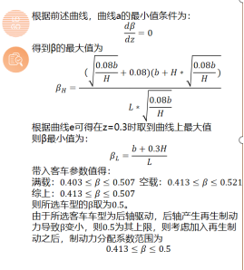 3.分析了再生制动力和机械摩擦力之间的关系,并就制动基本参数进行了计算,确定了制动力分配系数。